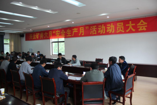 5月29日下午兴云矿井组织召开了2018年“六月安全生产月”活动动员大会,在家矿井领导、机关组室负责人、各连队队长书记、技术员39人参加了会议。动员大会由井长周向明同志主持。