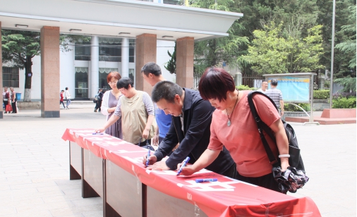 2018年6月8日矿机关党总支以“ 生命至上,安全发展”为主题,组织开展践行安全环保主题签名活动,机关54名党员干部在写有安全标语的横幅上庄严的签上了自己的名字。