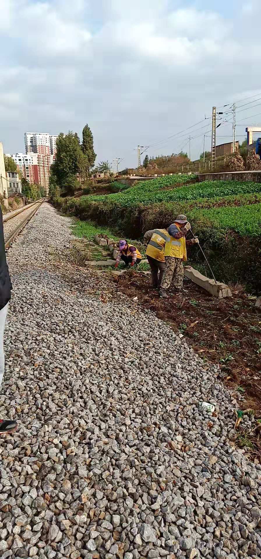 为了进一步巩固矿铁路专线安全隐患专项整治工作成果,矿于11月8日至今组织保卫部、销运公司人员在外山口社区人员的协助下配合曲靖工务段富源站工作人员对外山口片区铁路沿线村民在铁路安全线内种植蔬菜等行为进行制止,并要求村民拔除,同时富源站工作人员用碎石铺盖保护。(张志明)
