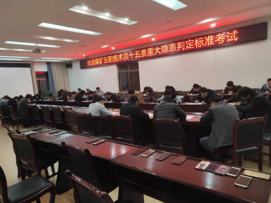 为认真贯彻国家《煤矿安全规程》、《煤矿重大生产安全事故隐患判定标准》,适应煤矿监管部门“逢查必问、逢查必考、逢查必究”的监察态势。结合矿井自身实际情况,3月12日晚上,由安全组负责组织全矿井28名“五职技术员”开展了考试活动。目的在于检验“五职技术员”对《煤矿安全规程》及《煤矿重大生产安全事故隐患判定标准》等知识面的掌握及运用,不断提高“五职技术员”的安全管理水平、安全知识面及重大隐患的判定能力。(兴云矿井 杨小波)