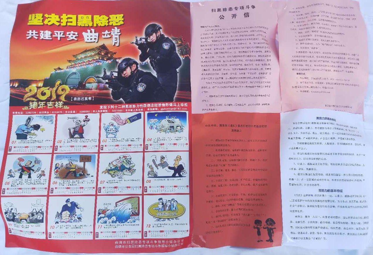 开展扫黑除恶专项斗争,是党中央、国务院做出的一项重大战略部署,事关社会大局稳定和国家长治久安,事关进行伟大斗争、建设伟大工程、推进伟大事业、实现伟大梦想。根据中央及省市的统一安排,富源县按照“有黑扫黑、无黑除恶、无恶治乱”的原则,对全县城乡黑恶势力和治安乱象进行重点整治,让黑恶势力无处遁形,全力保障人民安居乐业,社会安定有序、国家长治久安,进一步巩固党的执政基础,不断增强人民群众的获得感、幸福感、安全感。近日,维稳信访办公室在全矿范围内开展扫黑除恶专项斗争宣传工作,发放富源县扫黑除恶专项斗争领导小组办公室印制的《扫黑除恶》宣传手册、曲靖市扫黑除恶专项斗争领导小组办公室和曲靖市公安局扫黑除恶专项斗争领导小组办公室印制的《坚决扫黑除恶、共建平安曲靖发放》宣传图片、富源县扫黑除恶专项斗争领导小组印制的《扫黑除恶专项斗争公开信》、中共中央、国务院《通知》重点打击的十类违法犯罪黑恶势力、黑势力的基本特征、恶势力的基本特征等宣传资料100余份,在矿区主要道路口和人员密集场所张贴曲靖市扫黑除恶专项斗争领导小组办公室和曲靖市公安局扫黑除恶专项斗争领导小组办公室印制的《坚决扫黑除恶、共建平安曲靖发放》宣传图片、富源县扫黑除恶专项斗争领导小组《扫黑除恶专项斗争公开信》、中共中央、国务院《通知》重点打击的十类违法犯罪黑恶势力、黑势力的基本特征、恶势力的基本特征等宣传资料50余份,并在矿区安放《扫黑除恶举报箱》4个。在此,呼吁全矿广大干部职工家属,切实提高政治站位,树牢“四个意识”,坚定“四个自信”,积极行动起来,踊跃检举揭发这10类黑恶势力性质违法犯罪活动线索(1.威胁政治安全特别是制度安全、政权安全以及向政治领域渗透的黑恶势力;2.把持基层政权、操纵破环基层换届选举、垄断农村资源、侵吞集体资产的黑恶势力;3.利用家族、宗族势力横行乡里、称霸一方、欺压残害百姓的“村霸”等黑恶势力;4.在征地、租地、拆迁、工程项目建设等过程中煽动闹事的黑恶势力;5.在建筑工程、交通运输、矿产资源、仓储物流等行业、领域,强揽工程、恶意竞标、非法占地、滥开滥采的黑恶势力;6.在商贸市场、批发市场、车站、旅游景区等场所欺行霸市、强买强卖、收保护费的市霸、行霸等黑恶势力;7.操纵、经营“黄赌毒”等违法犯罪活动的黑恶势力;8.非法高利放贷、暴力讨债的黑恶势力;9.插手民间纠纷,充当地下“执法队”“出警队”“讨账队”和“职业医闹”的黑恶势力;10.境外黑社会入境发展渗透以及跨国跨境的黑恶势力。)。(张志明)