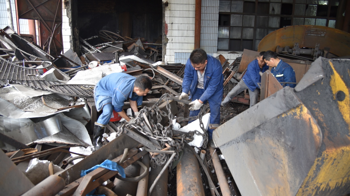 此次专项隐患排查治理对机电车间检修大棚内长年堆积的废铁、废旧管路、旧电缆、旧钢绳、工业废料等废旧物品进行了清理,通过人力、叉车、装载机大货车的相互配合,将约40吨的废旧物品搬移到厂区内煤泥二平台堆放。