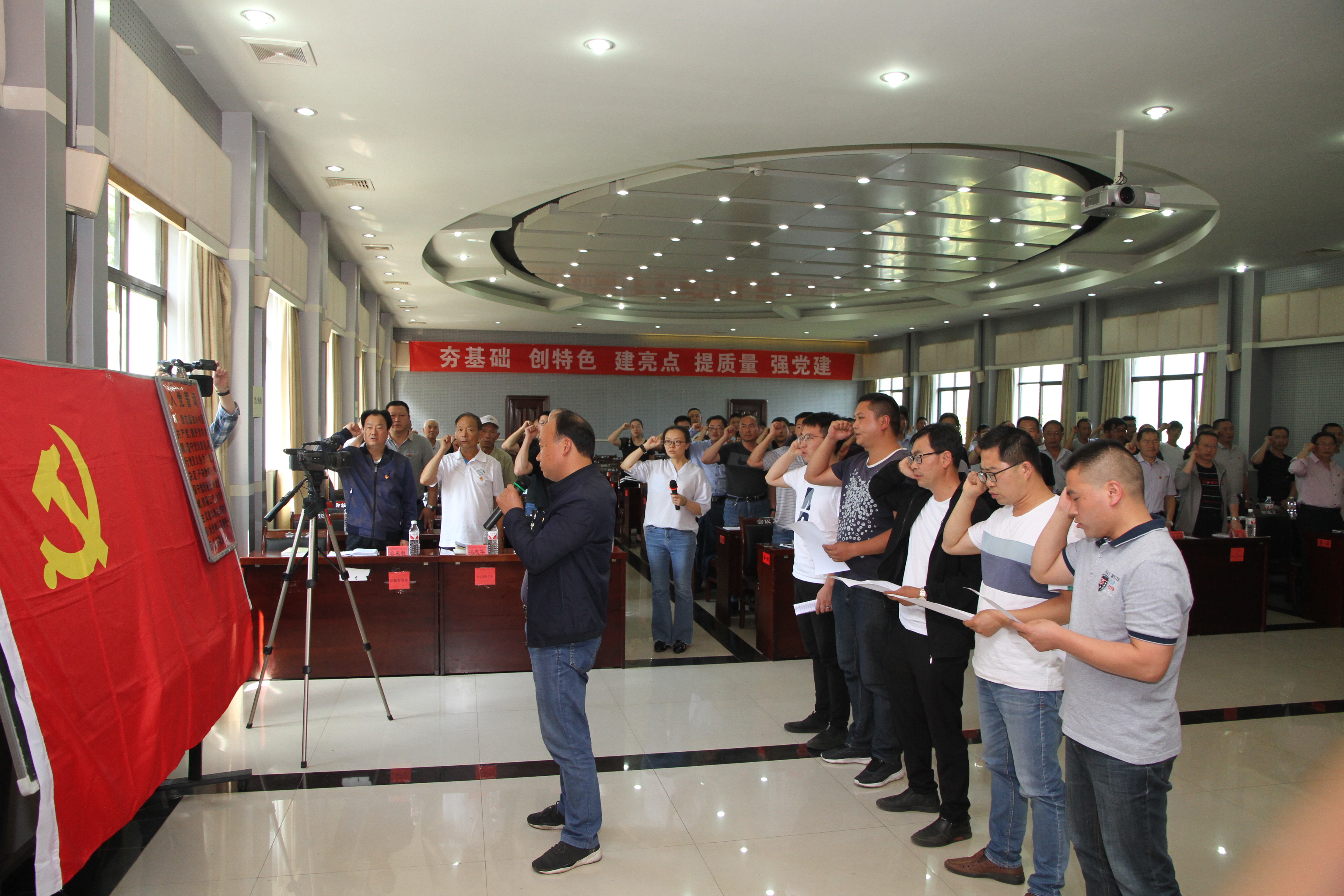 在纪念建党98周年大会上,党委委员、副矿长李云宣读了2019年新党员名单,5名新党员站在鲜艳的党旗下举起右手庄严宣誓,与会全体党员一同举手右手面向党旗重温入党誓词。