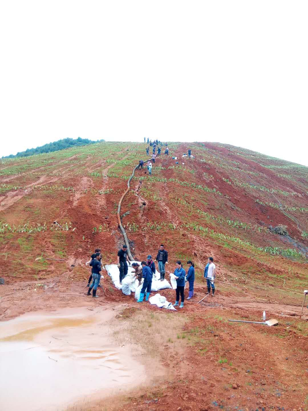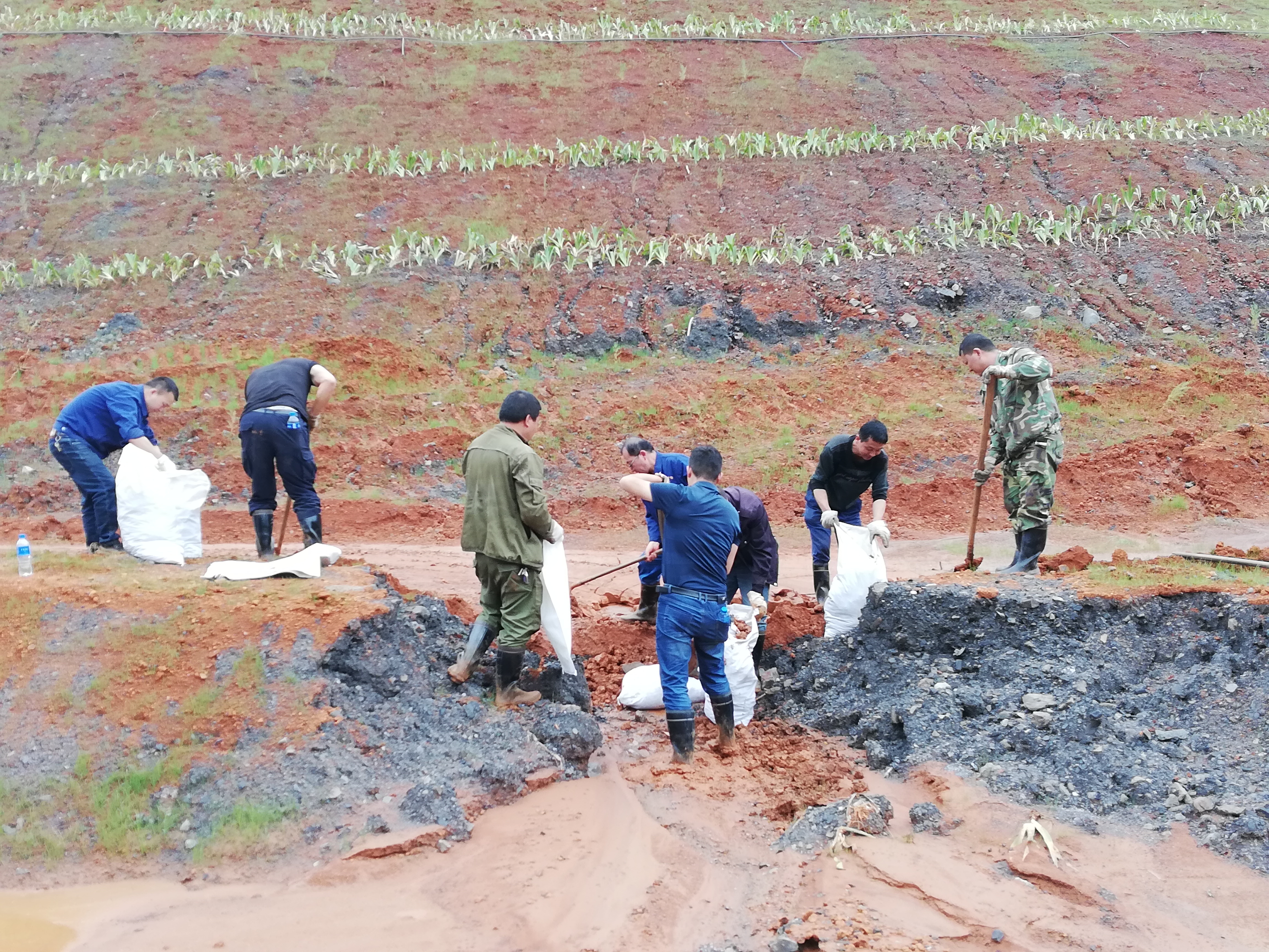 进入七月份以来,兴云片区连降中到大雨,兴云选煤厂小绿塘矸石山刚刚完成的绿化工程部分被面源水冲刷形成流水槽,损毁了刚刚种植的树林和草坪,为了防止面源雨水更大面积损坏带来更大的损失。2019年7月8日上午,兴云选煤厂组织了45名职工,携带锄头、尖铲、编织袋等对矸石山面源水进行挖沟、垒坝、布设排水管路进行排水工作。