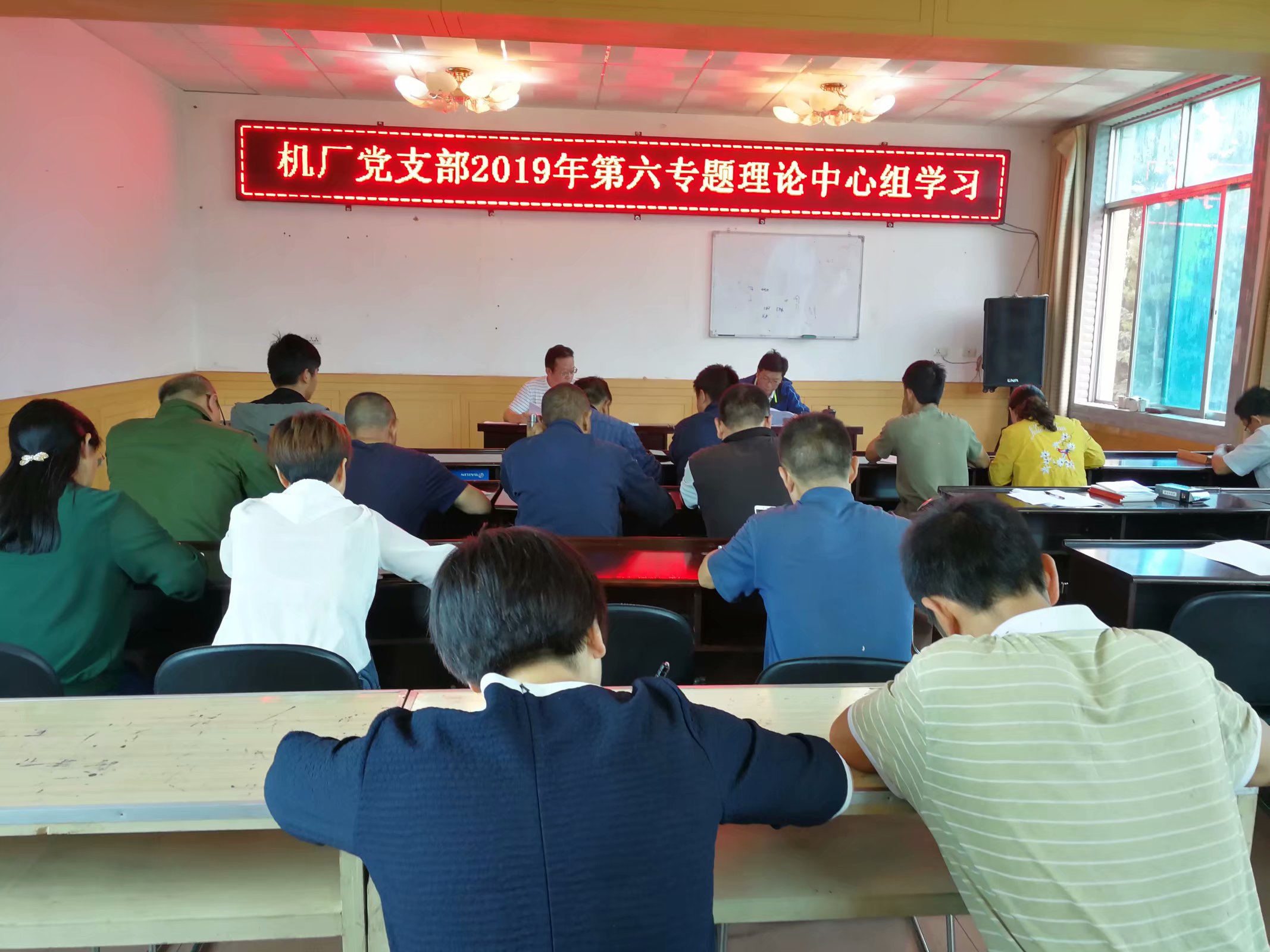 根据矿组织部关于基层领导班子2019年第六专题理论学习中心组学习的通知要求,机厂党支部于 2019年7月26日上午 10:00,在机厂大会议室组织召开了理论中心组学习会。矿挂钩联系领导、相关部室人员、厂领导班子、队股级管理人员、党员共22人参加了专题学习会,会议由支部书记蒋菱同志主持。会议主要学习了以下内容: