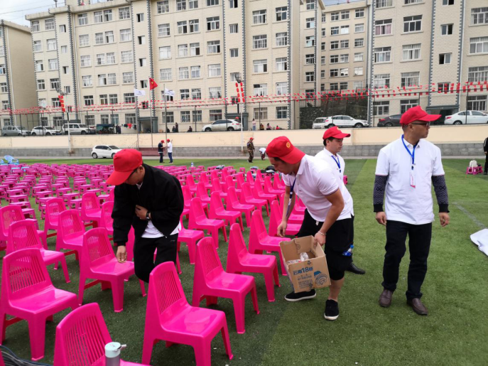 晚会当天,来自全矿各岗位的35名青年志愿者忙碌在晚会现场、矿区主干道、会场、食堂等服务点,有打扫卫生的、摆放桌椅的、端茶倒水的、迎宾服务的、交叉路口配合指挥交通的、现场维持秩序的等,尽职尽责,为晚会的顺利开展保驾护航。