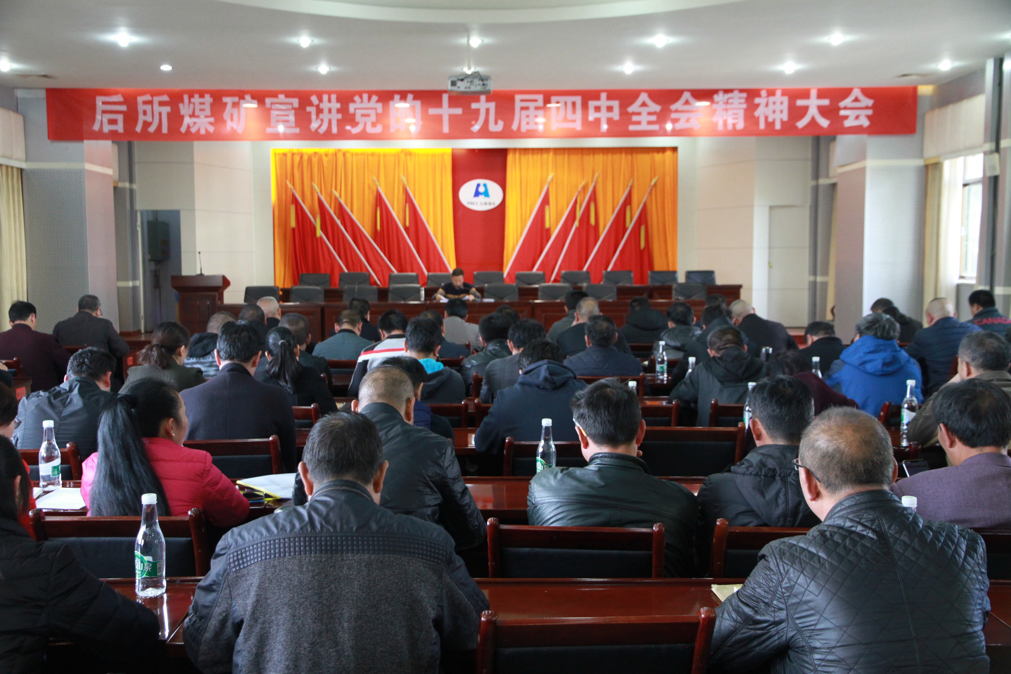 按照《云南煤化集团党委关于认真学习宣传贯彻党的十九届四中全会精神的通知》要求,后所煤矿党委认真组织开展宣讲党的十九届四中全会精神,制定了宣讲工作方案,及时把党的十九届四中全会精神传达贯彻到全矿党员、干部职工当中。