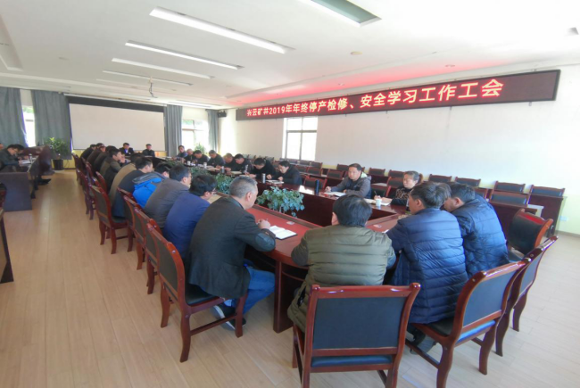 12月25日下午14:00分,井长赵明光在机关中会议室主持召开2019年年终停产检修、安全学习工作会,矿井党政班子成员、各组室班子及连队党政主要领导36人参加会议。
