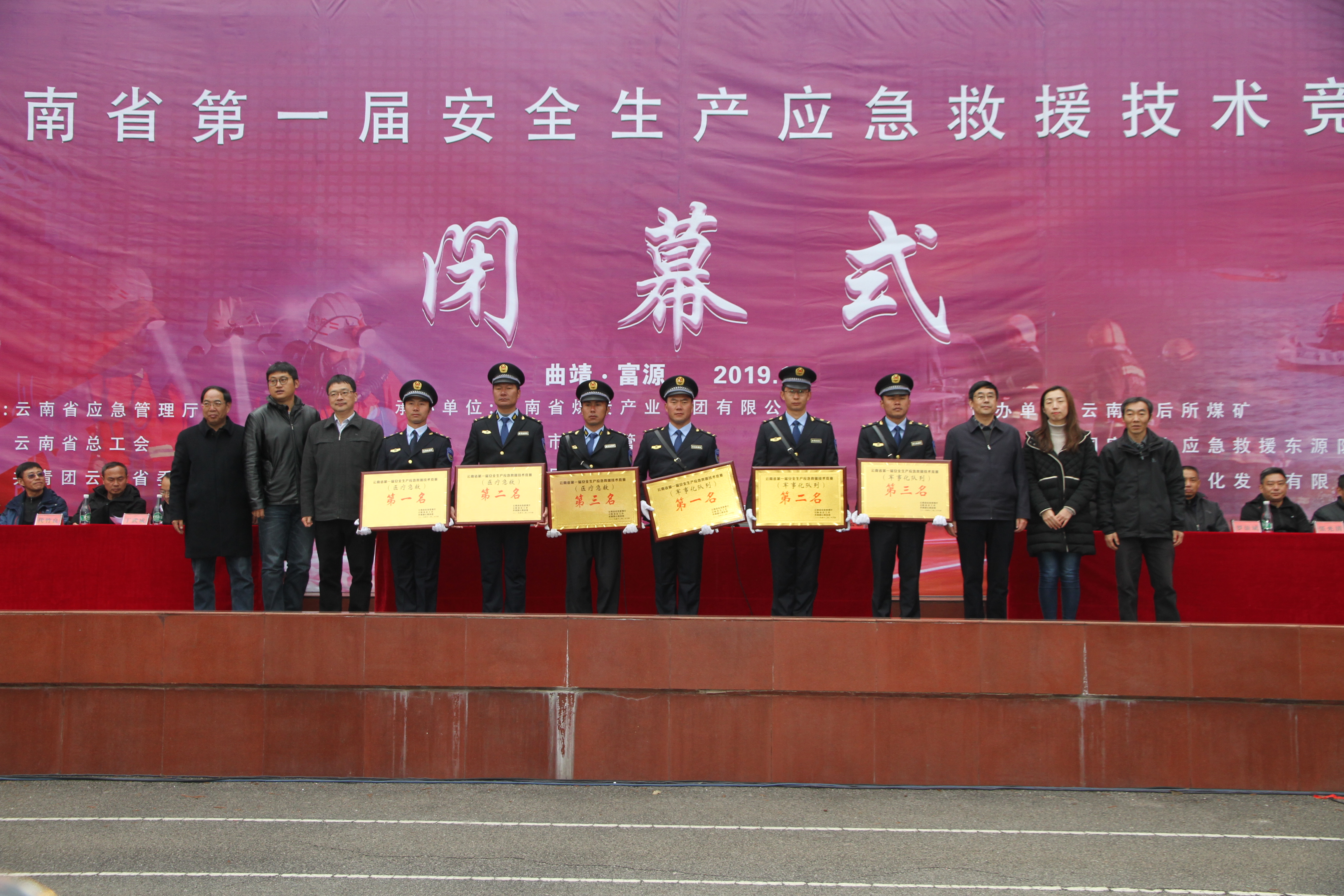 开幕仪式结束后紧接着进行了紧张激烈的比赛,参赛队员们充分发挥日常训练的效果,全面展示了应急救援的业务水平,经过两天的比拼最终国家矿山应急救援东源队荣获团体综合一等奖,昭通应急救援中心、普洱市矿山救护队获二等奖,云南曲煤焦化实业发展有限公司消防队、国家危险化学品应急救援云南石化队、祥云县矿山救护队获三等奖,其余代表队获优秀组织奖。