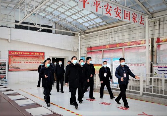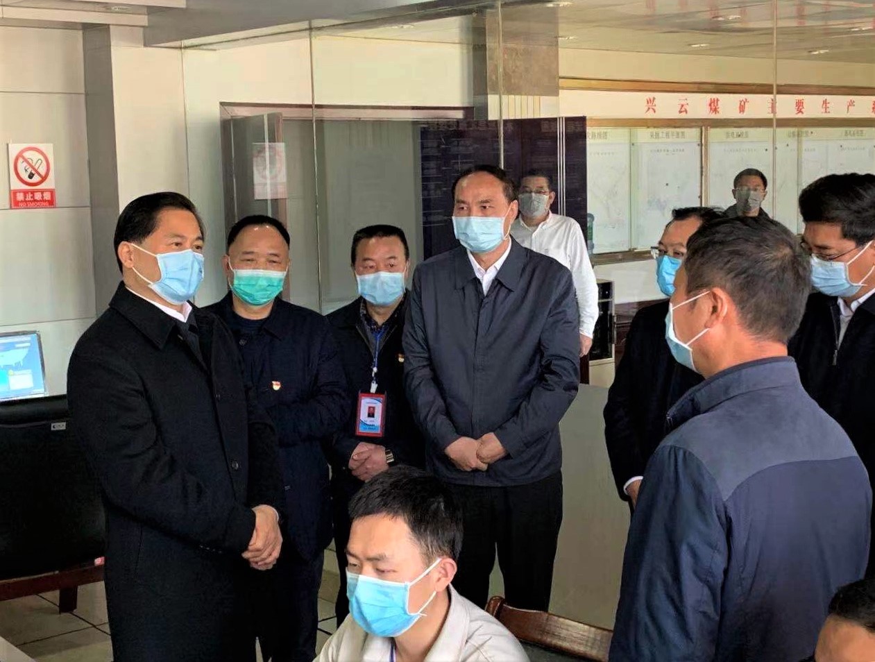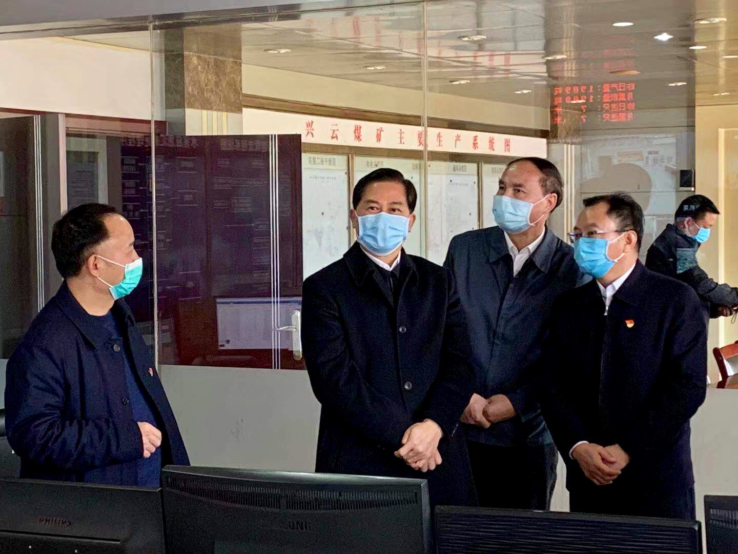 2月13日,省委书记陈豪率队到后所煤矿兴云矿井检查调研煤矿企业对新冠肺炎疫情防控和复工复产工作情况。宁德刚董事长陪同检查调研。