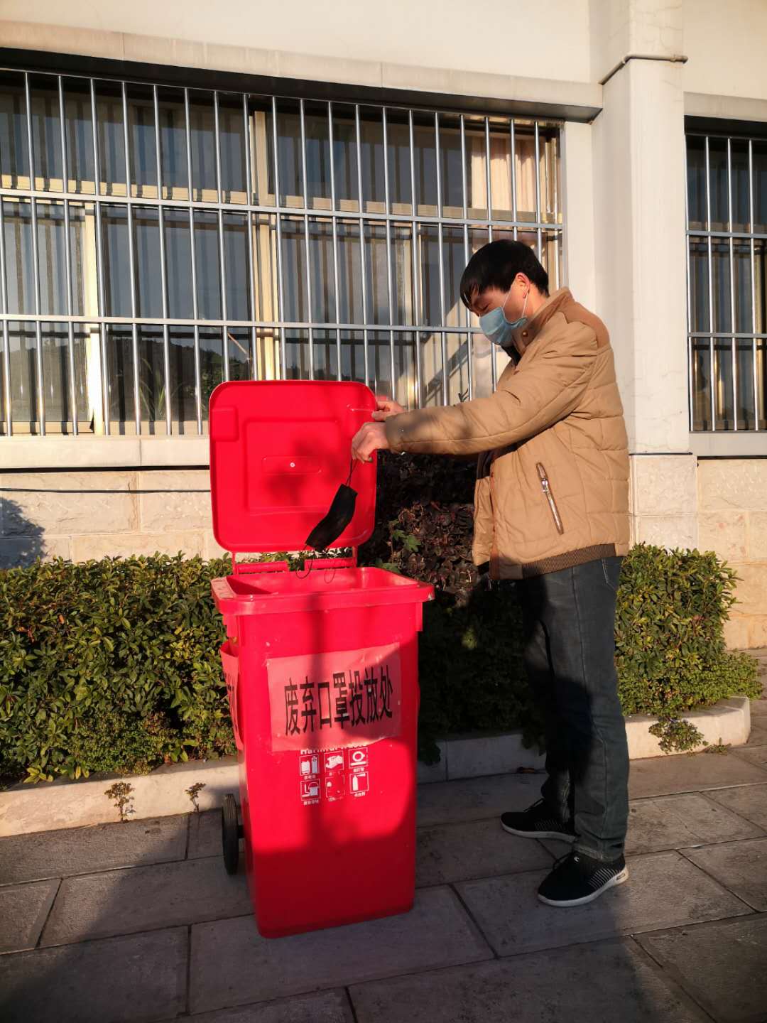 在矿区主干道、农贸市场附近新增了几只红色的垃圾桶,桶壁上贴有“废弃口罩投放点”醒目字样。疫情防控期,口罩成了人们安全的保障,但大面积使用也带来回收处理上的麻烦。为解决好废旧口罩的处理问题,矿上专门购进一批红色垃圾桶作为回收废弃口罩的专用桶,安放到人流量较大、居住密度较高之地,引导职工家属规范投放,废弃口罩当天则由县环卫站单独运输至垃圾处理站作无害化销毁处理。