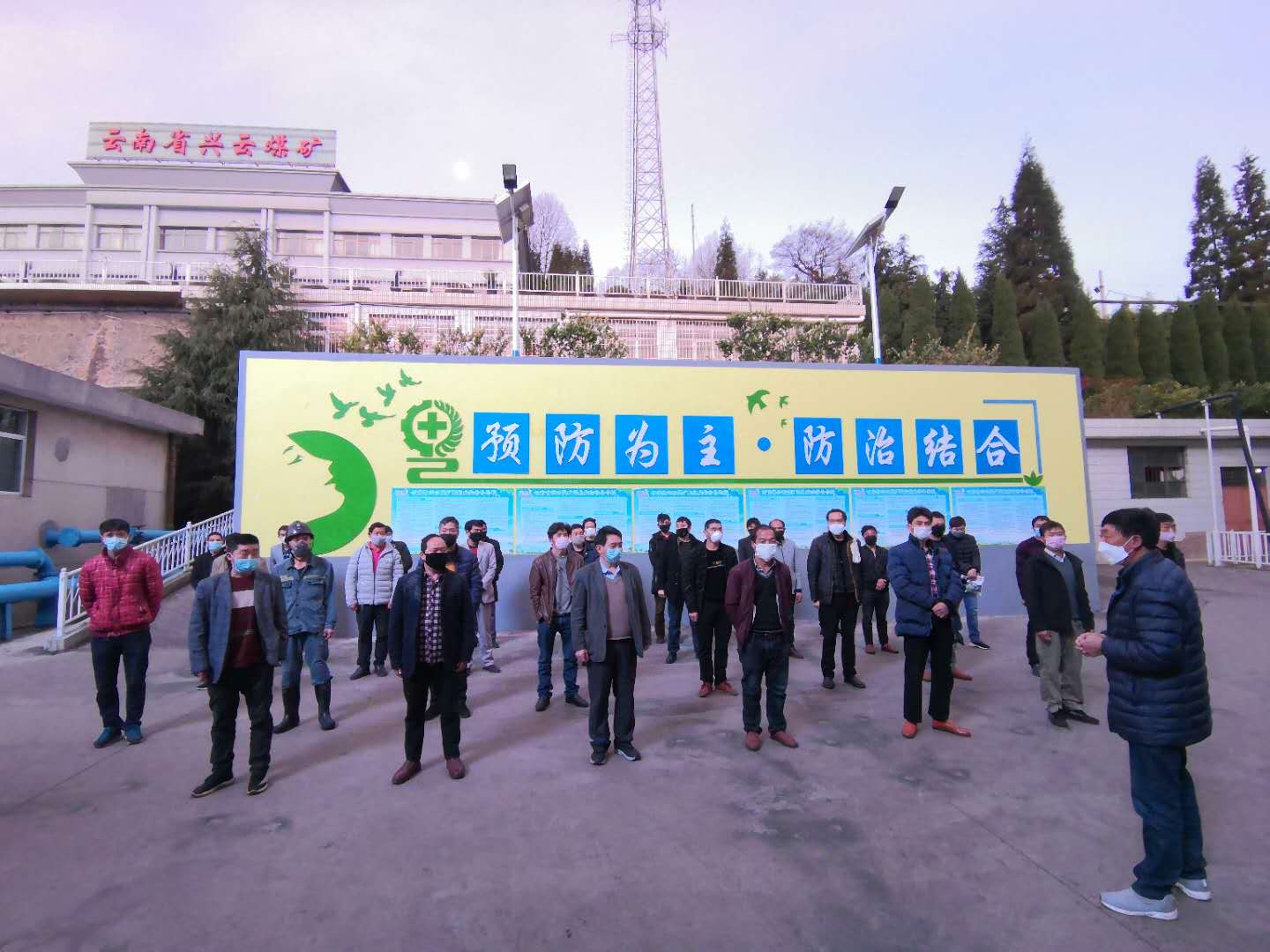 把好人员关。“出门在外大家一定要戴上口罩,回到家里要常通风、勤洗手,非常时期大家不要扎堆、不要聚会.....”各车间各连队办公室,党员干部在电话中耐心细致的开展疫情防控知识宣讲,帮助职工释疑解惑,消除职工恐慌心理,引导职工科学防控。