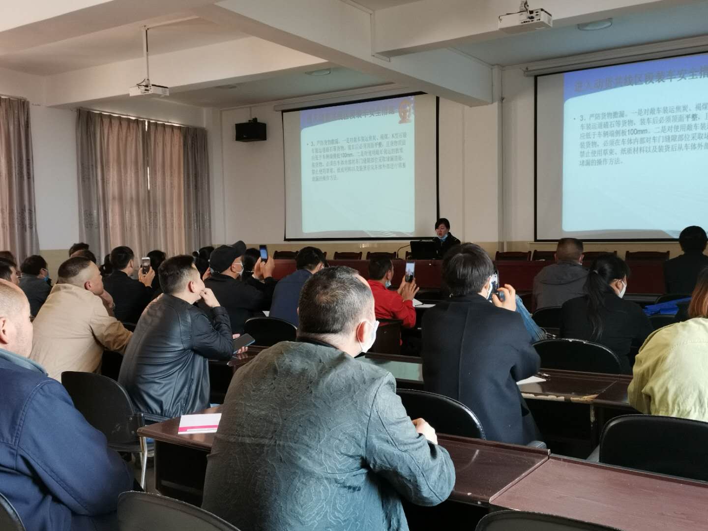货运室工作人员利用电脑投影图像列举了车皮的破损、修复再用或不可用的实例,强调了装卸人员检查车皮可能出现的安全隐患,参加人员认真听讲、做着笔记,经过1个半小时的讲解培训,使货运装卸人员提升了业务知识,促使我矿专用线的装卸工作专业、安全、高效,符合铁路部门对货物运输安全的要求。(段丽)