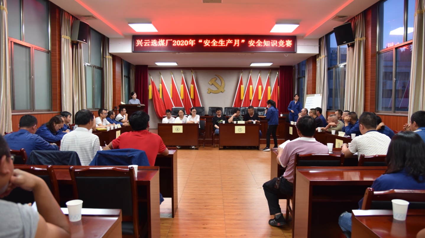 为继续深入开展“安全生产月”活动,兴云选煤厂按照《兴云选煤厂关于开展2020年“六月安全生产月”活动的通知》的安排,为了增强全体职工的安全、环保意识,6月16日在厂综合楼四楼会议室举行了安全、环保知识竞赛。
