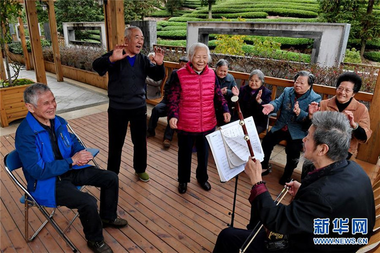 老人在福建省武夷山市社会福利中心唱歌(2018年11月1日摄)。 新华社记者 张国俊 摄