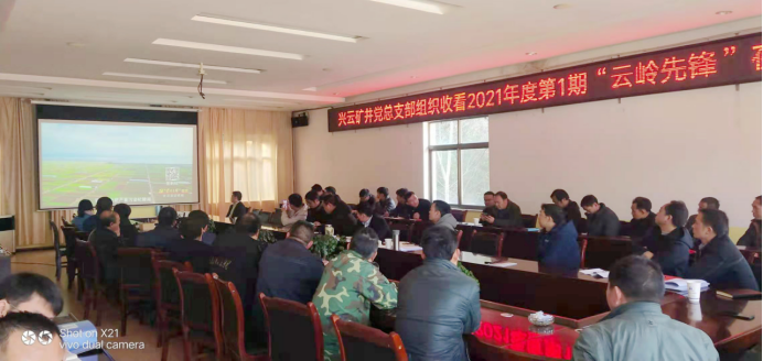 1月29日下午,兴云矿井党总支部在机关四楼会议室组织党员干部60人收看2021年第1期“云岭先锋”夜校节目。