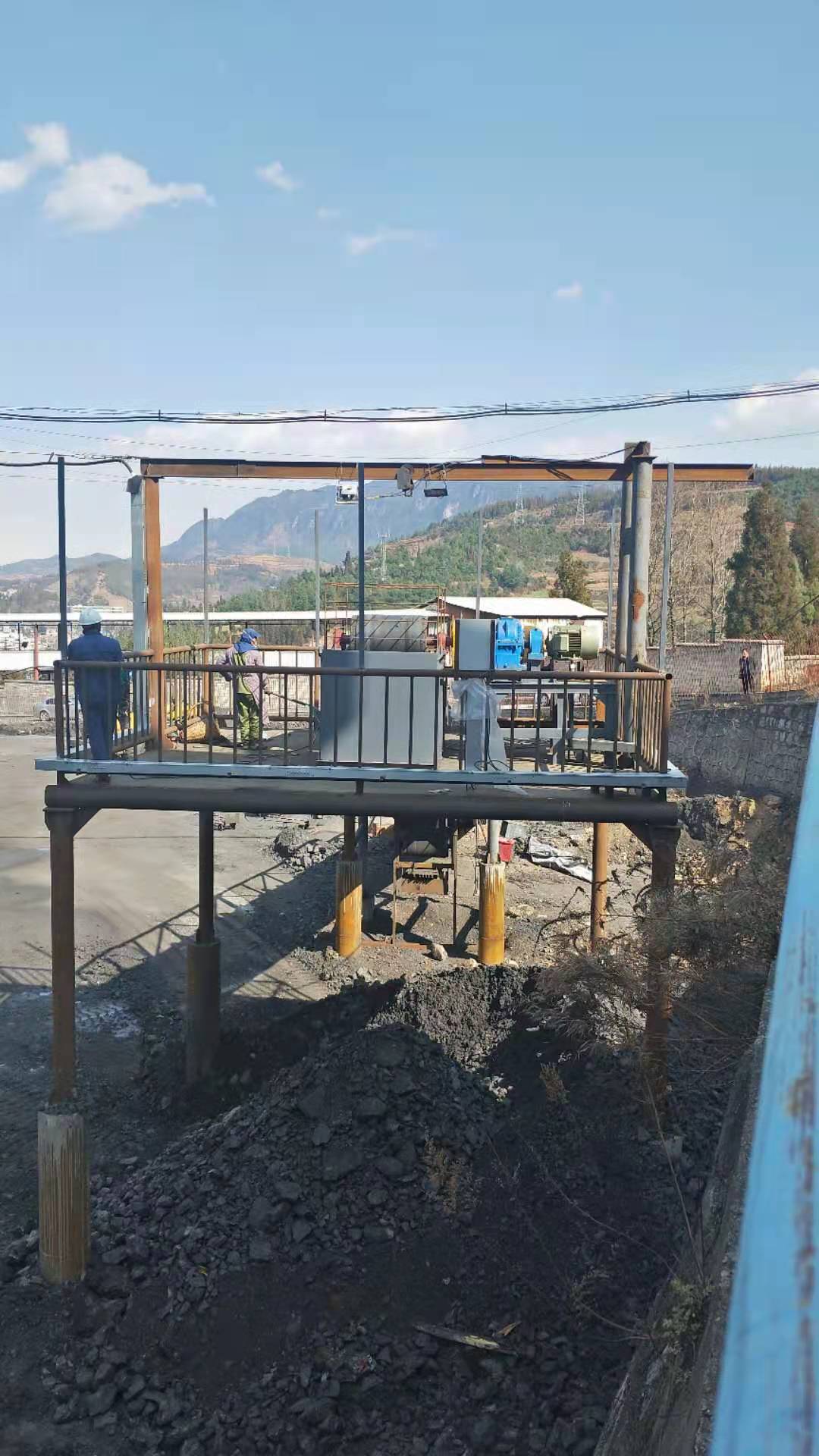 2020年10月经矿多次研究决定,从现有翻罐笼底部打一条通道直通选煤厂原煤场,再利用皮带运输机将矿井矸石直接运到原煤场装车外运,该通道长32.4米,坡度15゜,由兴云矿井于2020年11月2日开始施工,2020年12月15日结束。兴云选煤厂负责长64.65米,宽800毫米的一台皮带运输机的安装,包括皮带走廊、支架、机头、机尾的设计、制作、吊装、调试,于2021年1月16日开始吊装,25日安装结束,30日投入使用。该运输系统的投入使用,有效解决了原有系统存在的安全、环保、转运成本过高等问题。
