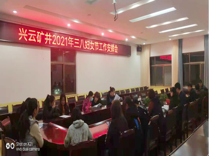 在迎接第111个“三 .八”国际妇女节,同时是建党100周年的喜庆节日来临之际,兴云矿井工会根据后所煤矿工会的工作安排,于2月24日组织矿井三个连队负责人及部分女职工代表23人召开了“三 . 八”节活动工作安排部署会议。