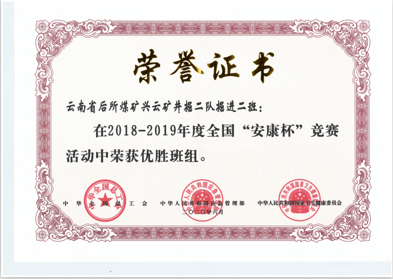 兴云矿井掘进二队二班荣获“全国‘安康杯’优胜班组”荣誉称号