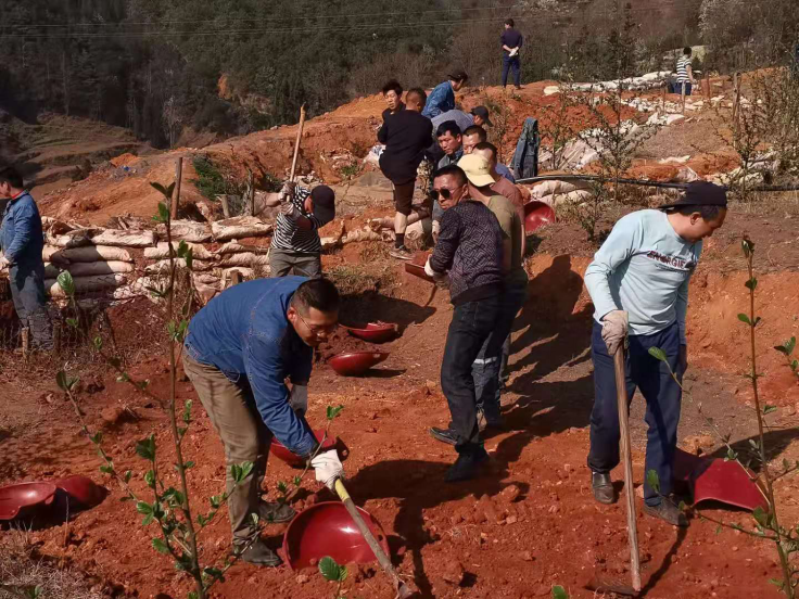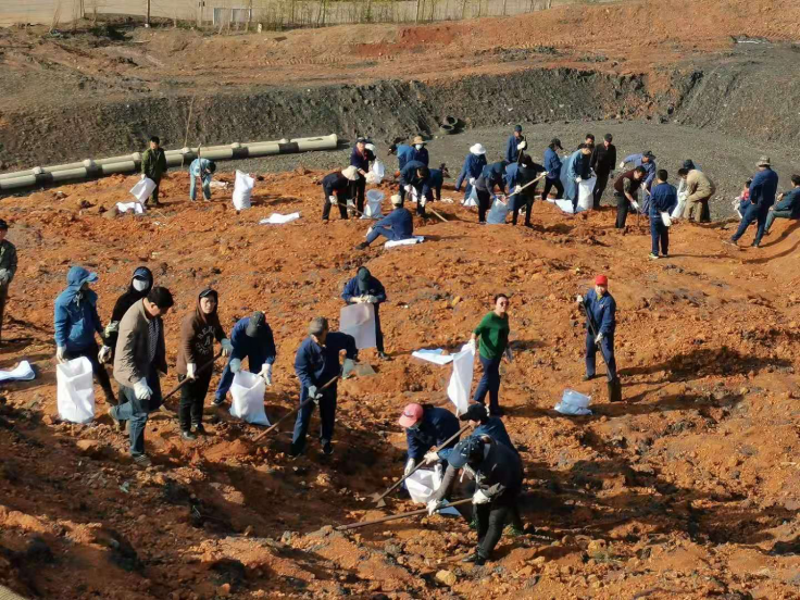 为尽早消除雨季到来对滑坡区域带来的安全隐患,2021年3月14日至15日,兴云选煤厂组织各车间、组室人员200多人分片区对矸石山进行治理。大家顶着炎炎烈日,把滑坡体中的红土挖出装袋搬运到滑坡区域两侧,在滑坡区域新开挖2个大小不等的面源水收集池,铺设了四趟直径20公分的胶管,与此同时对矸石山大坝后第一个面源水沉淀池坝埂用编织袋装矸石进行加固。
