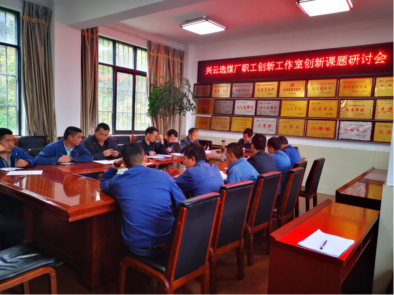 为了充分发挥兴云选煤厂职工创新工作室的作用,4月8日,兴云选煤厂党总支书记李荣春同志,组织厂职工创新工作室技术骨干共计14人,在厂调度会议室召开创新工作室课题研讨会议。
