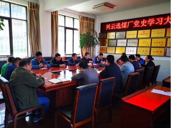 4月19日,矿长王自宏同志到兴云选煤厂进行党史学习教育宣讲,党员干部23人在厂调度会议室聆听了宣讲。