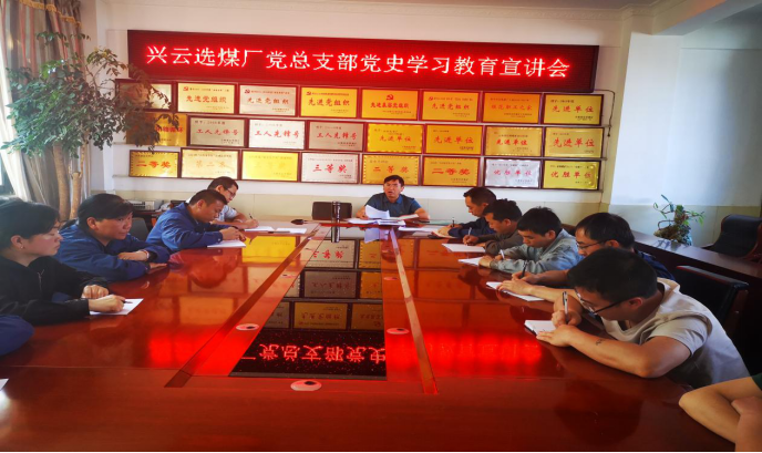 4月21日根据兴云选煤厂党总支部的安排部署,兴云选煤厂党总支副书记、厂长陈光明同志在调度会议室对挂钩的洗煤车间党支部、化验车间党支进行了党史学习教育宣讲,12名党员参加了宣讲活动。