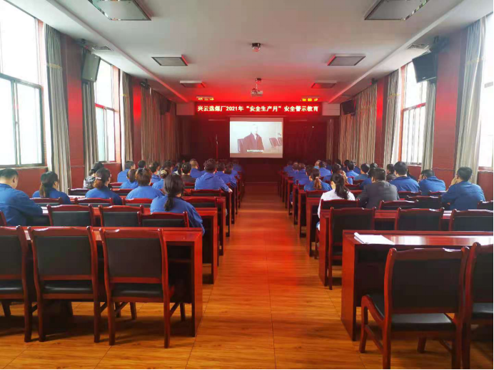 根据《兴云煤矿选煤厂关于开展2021年“六月安全生产月”活动的通知》文件精神,兴云选煤厂于6月8日组织在厂党员、干部、职工113余人观看安全警示教育片。