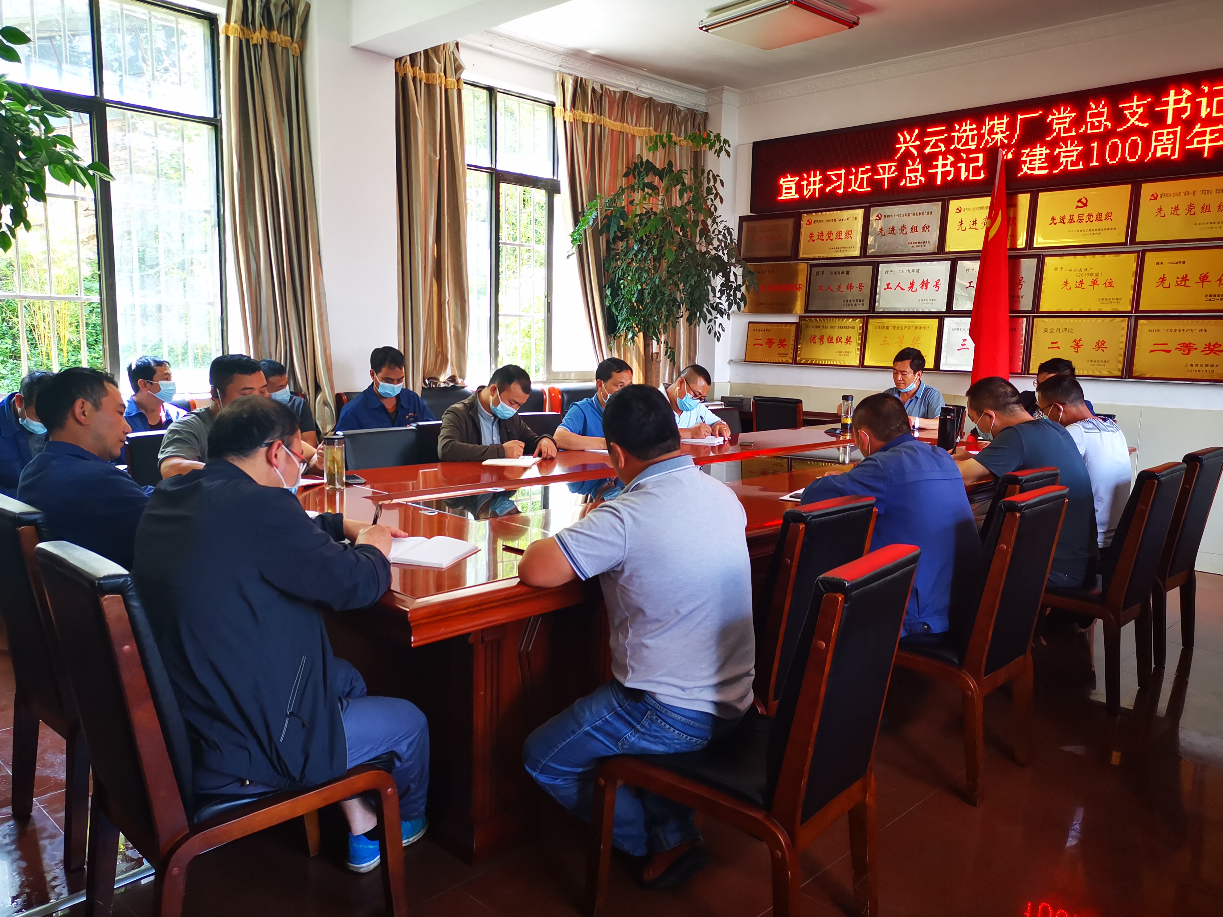 8月18日,兴云选煤厂党总支书记李荣春同志组织在厂上班的党员共计22人在厂一楼调度会议室宣讲习近平总书记“七一”讲话精神。 通过学习习近平“七一”重要讲话精神,教育引导广大党员干部职工要提高认识和政治站位,让厂党员职工深刻认识到,坚持党的全面领导是国有企业的“根”和“魂”,是国有企业最大的优势。学习习近平总书记“七一”重要讲话,要坚持学思用贯通、知信行合一,不断用党的创新理论武装头脑、指导实践、推动工作;要学出政治忠诚、学出政治信仰、学出政治能力;要学深悟透和准确把握习近平总书记关于安全生产的重要论述精神实质,树牢安全发展理念,坚守安全红线和底线思维,增强从根本上消除事故隐患的思想自觉和行动自觉;要以市场为导向,全面深化“三项制度”改革,真正实现管理人员能上能下上、员工能进能出、收入能增能减,切实转换经营机制,全面增强企业活力;要增强政治意识,遵守政治纪律,提高政治能力;要严格遵守党的政治纪律和政治规矩,坚决贯彻执行民主集中制,做到“四个服从”。