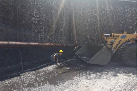 主厂房背后排水沟连接煤泥大棚,煤泥水在水沟内沉积后极易堵塞水沟,导致煤泥水污染厂区路面造成环境污染事件和影响车辆的安全通行。车间职工采用先用水冲,然后再清理的模式提升清理效率,为了防止清理出来的煤泥对厂区路面造成二次污染,积极协调装载机的配合,将水沟内清理出来的煤泥直接铲入装载机铲斗内,经过一下午的努力,终于将车间辖区内的排水沟渠清理干净,为我厂安全、环保工作目标的实现尽了一份力。