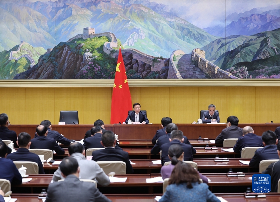 12月16日,中共中央政治局常委、国务院副总理韩正在北京出席企业职工基本养老保险全国统筹实施工作电视电话会议并讲话。 新华社记者王晔 摄