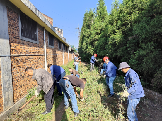 活动中,厂党总支书记及班子成员亲自带队,率先垂范,大家带上手套,拿上镰刀、斧头、锄头、铲子对厂区围墙边杂草及枯枝树叶进行全面清除。大家团结协作,不怕脏、不怕累,经过三个多小时的辛苦劳动,围墙周边的杂草被清理的一干二净,使得厂区周边环境焕然一新。