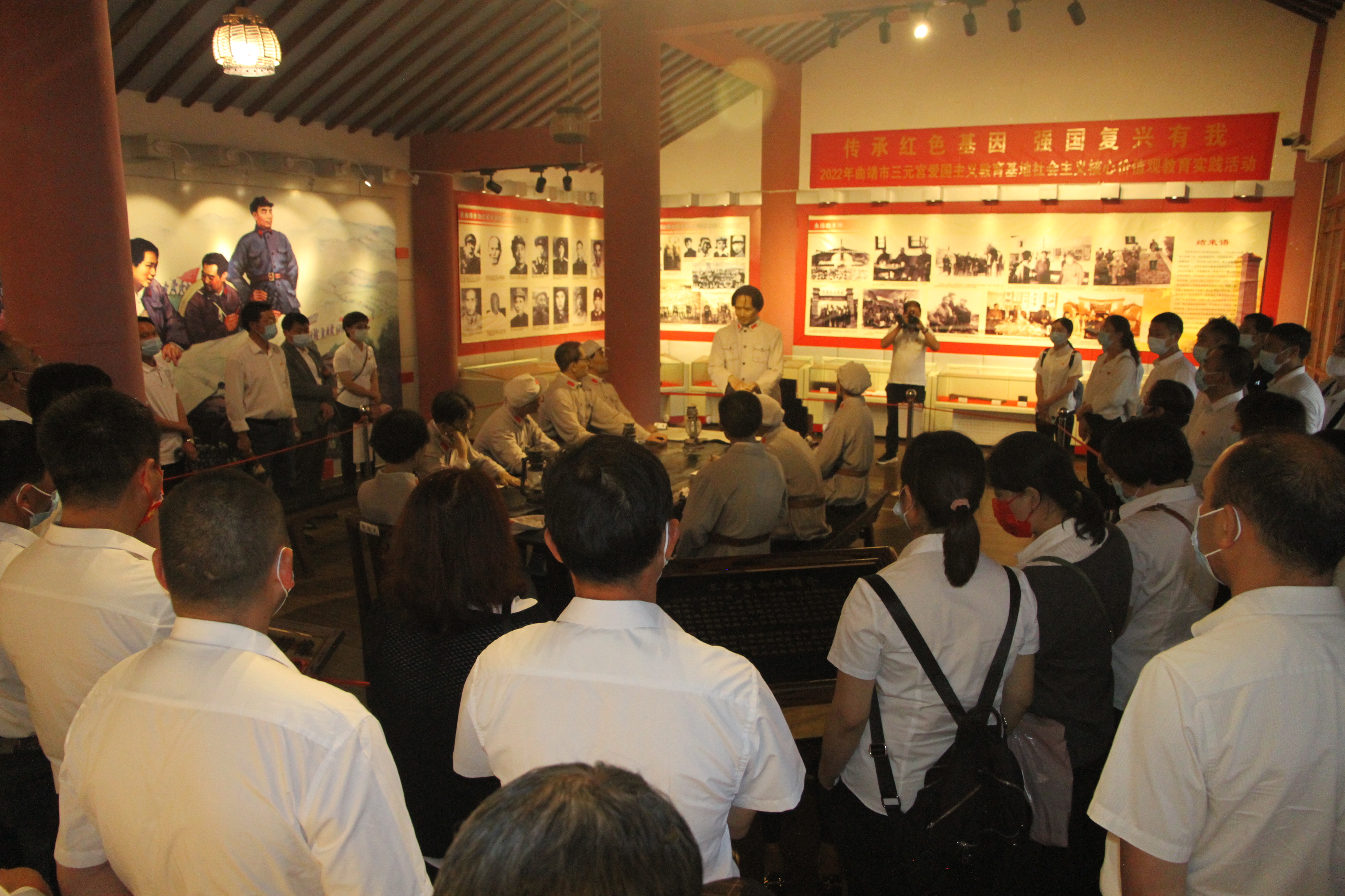 活动中全体党员在讲解员的引领下,共同回顾了红军长征过曲靖的红色历史,“1935年4月27日晚,毛泽东、周恩来、朱德等领导人来到三元宫,根据缴获的军用地图,召开了中央政治局和中革军委联席会议,作出了抢渡金沙江、在川西建立根据地的重要战略决策……”通过讲解大家进一步了解在三元宫召开会议的历史意义,通过观看了红军长征过曲靖时的线路、图片资料、三元宫会议人物塑像、红军长征路过曲靖时的居住旧址和使用过的物件,一幅幅图片资料,一件件泛黄的实物,使参加活动党员深受教育。