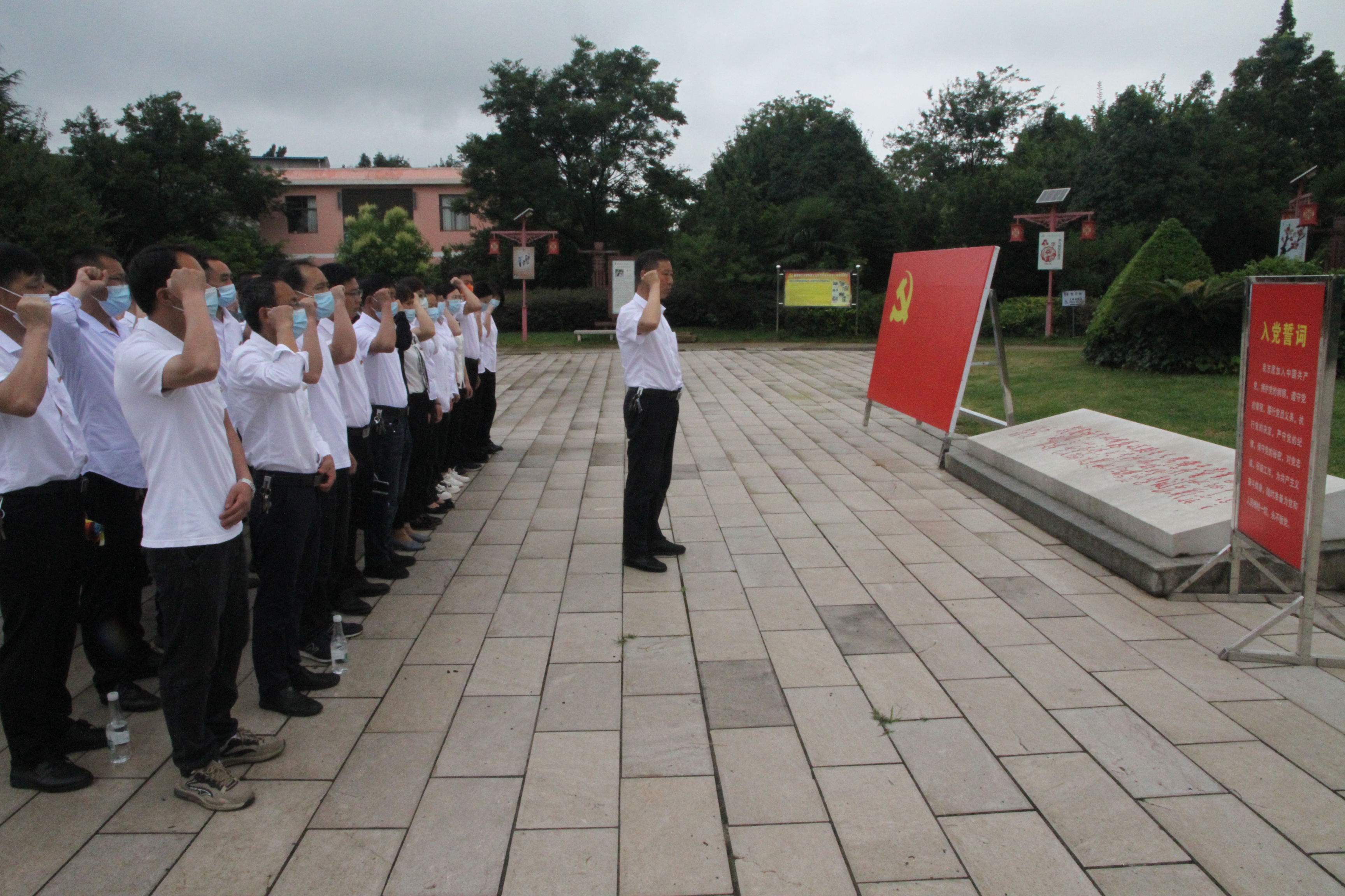参观结束后在鲜艳的党旗下,王学文带领全体党员重温入党誓词,并讲授了一堂党课,他要求公司全体党员要认真履职尽责,时刻牢记党员身份,遵章守纪,要从革命先辈的高尚品格中汲取信仰的力量,继承和发扬长征精神,在各自的岗位上发挥好党员的先锋模范带头作用,为公司的高质量发展贡献力量。
