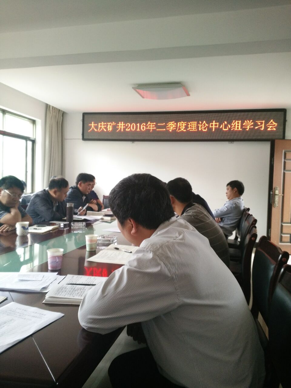 7月1日,大庆矿井在井口二楼会议室组织召开2016年第二季度理论中心组学习活动,会议由大庆矿井党总支书记杨昌松主持,共有29人参加,学习内容为:一、昆明市西山区人民检察院《检查建议书》;二、东源煤电公司党委组织部关于党员缴纳党费工作的通知;三、中央组织部负责人就《关于在深化国有企业改革中坚持党的领导加强党的建设的若干意见》答记者问;四、云南省人民政府关于媒体行业化解过剩产能实现脱困发展的实施意见。(朱林飞)