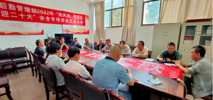 会议传达学习了集团、公司关于开展2022年“防风险、保安全、迎二十大”安全生产专项活动的通知,就开展好“防风险、保安全、迎二十大”安全生产专项活动作了详细的安排布置。全体参会人员在“防风险、保安全、迎二十大”安全宣传标语上郑重签上了自己的名字,并承诺做好安全带头人,以实际行动迎接党的二十大胜利召开。(后勤管理部 孙艳芬)