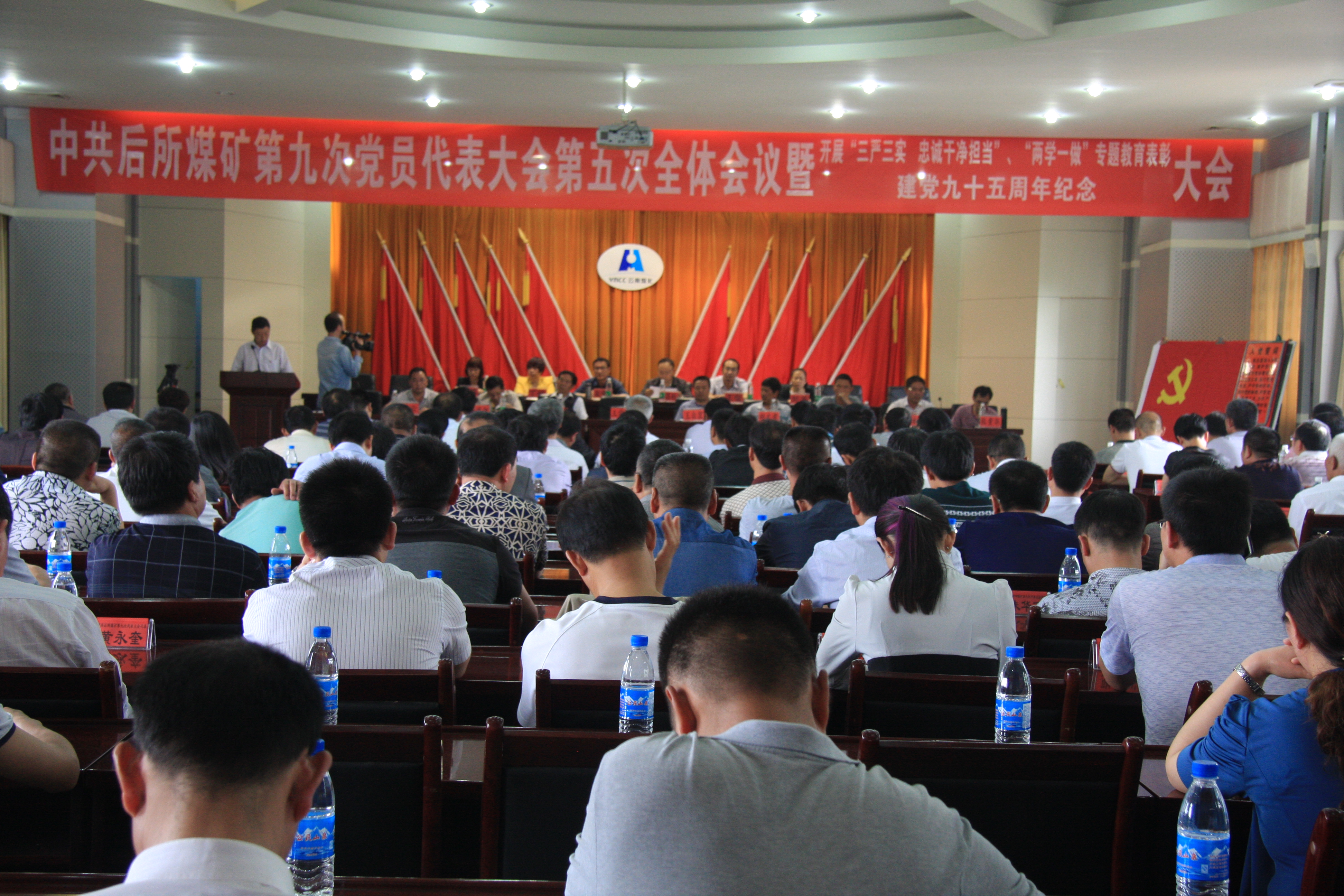 6月30日我矿召开中共后所煤矿第九次党代会第五次全体会议暨建党九十五周年纪念大会及“三严三实忠诚干净担当”和“两学一做”学习教育暨创先争优表彰大会。