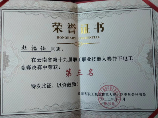 后所煤矿有限公司工会组织代表队参加云南省第十九届职工职业技能大赛井下电工竞赛决赛喜获佳绩