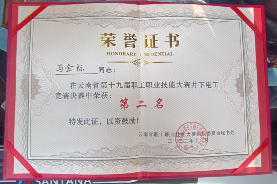 决赛分为理论考试和模块一竞赛(矿用常用电器设备安装与调试)、模块二竞赛(简单电器控制线路设计)、模块三竞赛(可编程控制器系统设计、安装与调试)。经过两天的激烈比拼,最终,装备制造技术服务公司马金标获得本次竞赛第二名,兴云煤矿杜福佑获得第三名,云南省职工经济技术创新工程领导小组授予两人“云南省技术能手”称号。后矿公司获得本次竞赛的优秀组织奖。(公司工会)