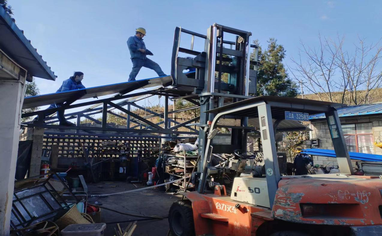 后所煤矿公司安全检查小组到市场营销部货场开展安全隐患检查时,发现临时检修房属木架结构和石棉瓦建成,且使用年限较长,在检修房内生产作业,存在安全隐患。为了消除安全隐患,检查小组提出对临时检修房进行重新安装改造的要求。近日,市场营销部会同后矿装备公司对临时检修房改造进行了讨论并制定改造方案,组织施工人员进场施工,经过不懈努力,现已顺利完成临时检修房钢架结构和采钢瓦安装工作。此项工作,为市场营销部安全生产作业场所消除了隐患,为后续工作的开展提供了有力的安全保障。(市场营销部 吴发永)
