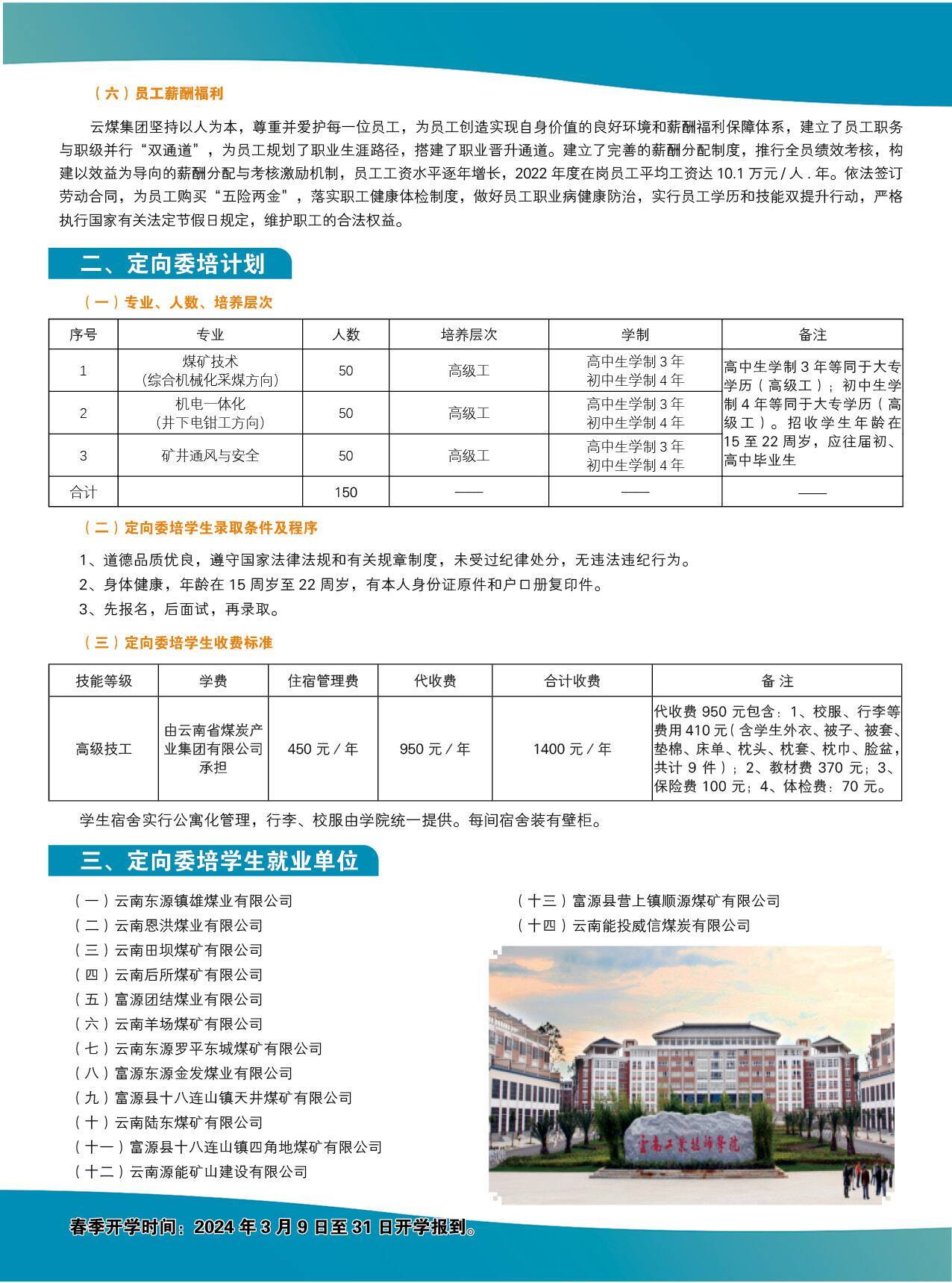 云南省煤炭产业集团有限公司定向委托培养2024年春季招生简章