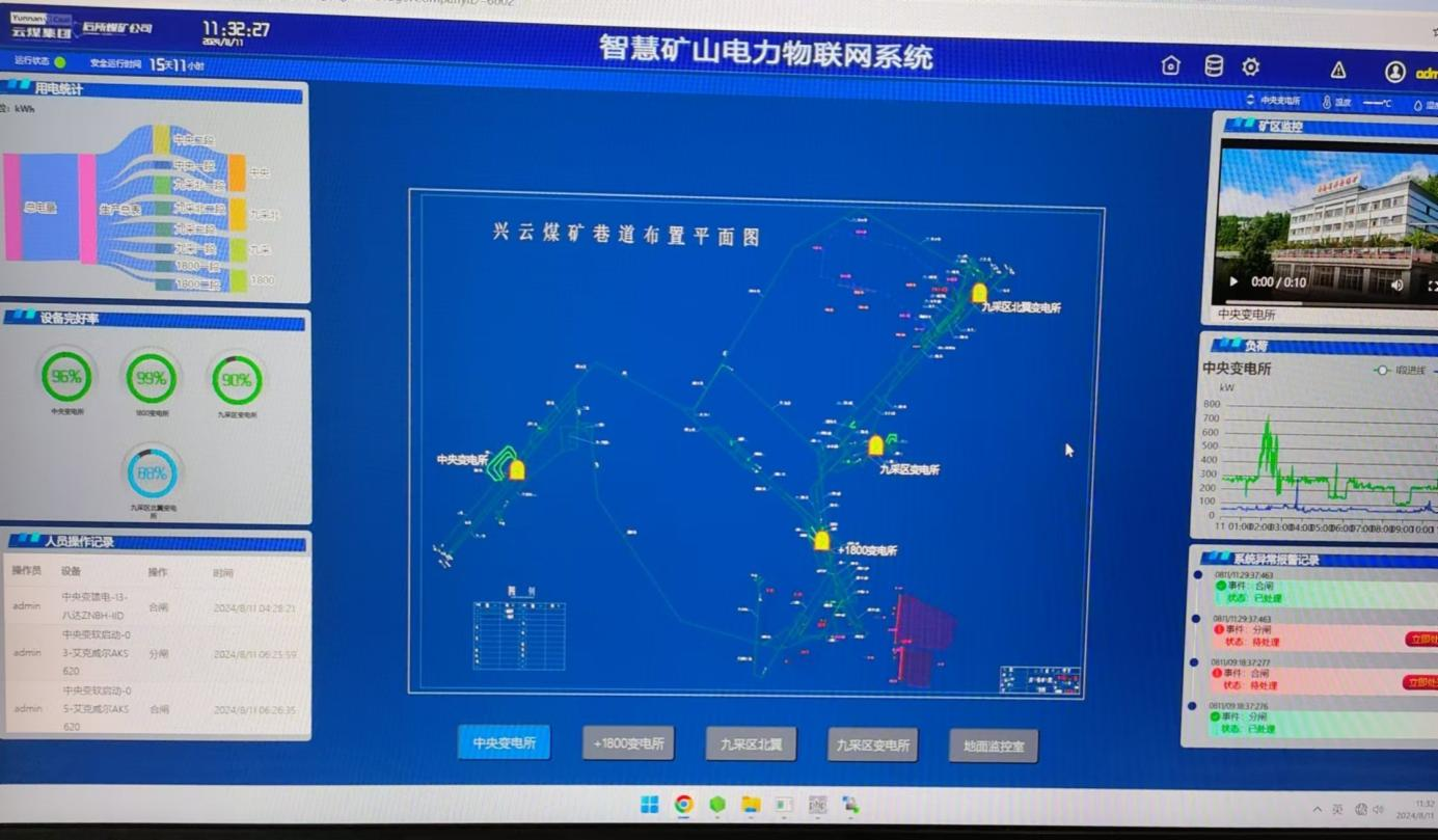 兴云煤矿根据智能化、智慧矿山建设的要求,投资90多万元建设融合管控系统遵从智慧物联“云-管-边-端”体系架构,形成“一平台一体系” 的技术框架,建立电力监控系统,防越级跳闸系统、高低压漏电保护系统、设备健康诊断系统、能耗分析管理体系、智能辅助系统,形成智能供电云网融合管控平台,全面实现对矿井供电系统与用电设备的环境量、物理量、状态量、电气量的全面采集,关联分析与控制,用智能系统来感知负荷的变化、故障的演变以及机电设备的运行工况。