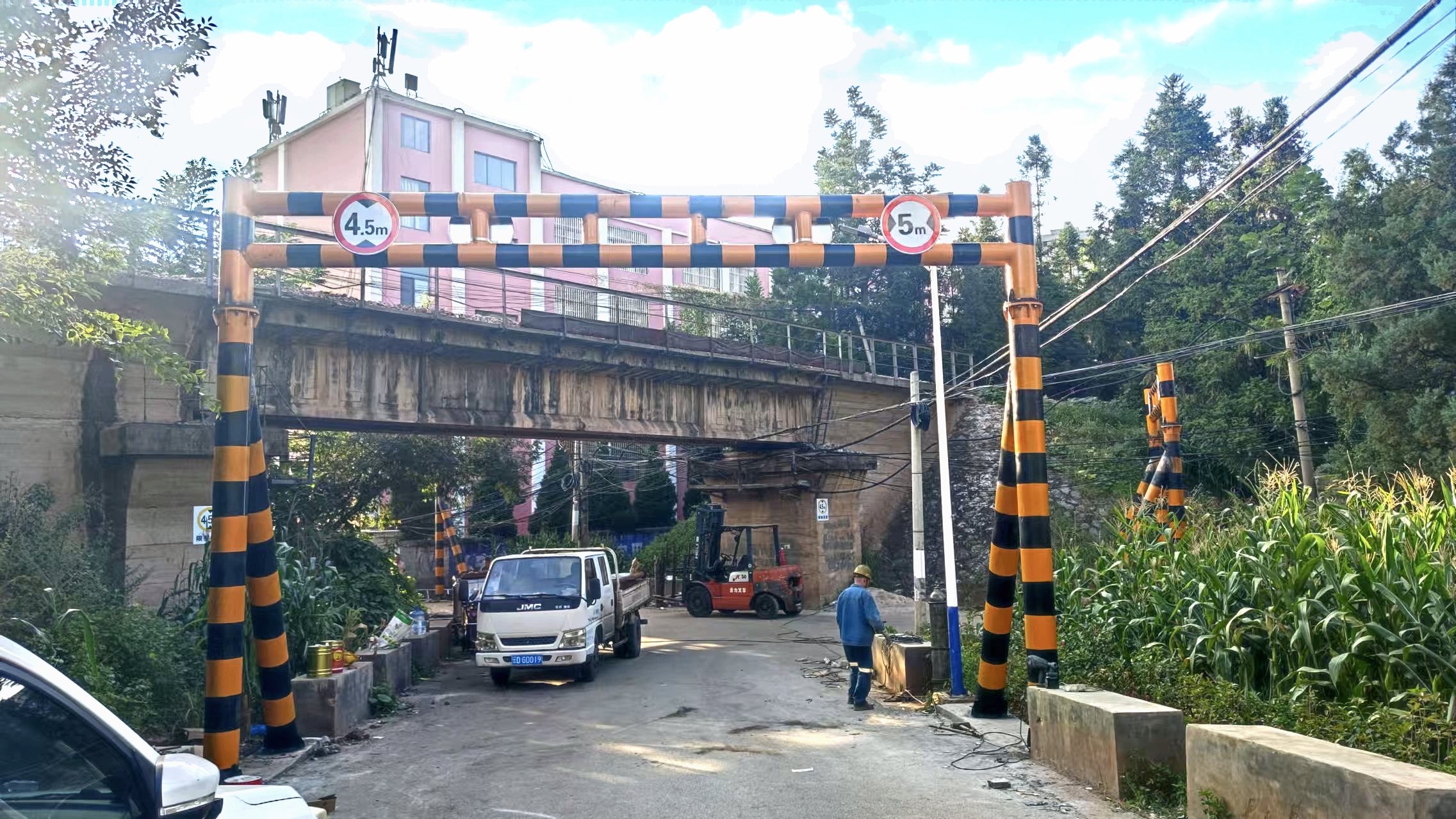 限高架既保证了铁路线桥架下方车辆的安全通行,又避免了超高车辆对铁路设施造成损坏,为公司物流运输提供了有力保障。