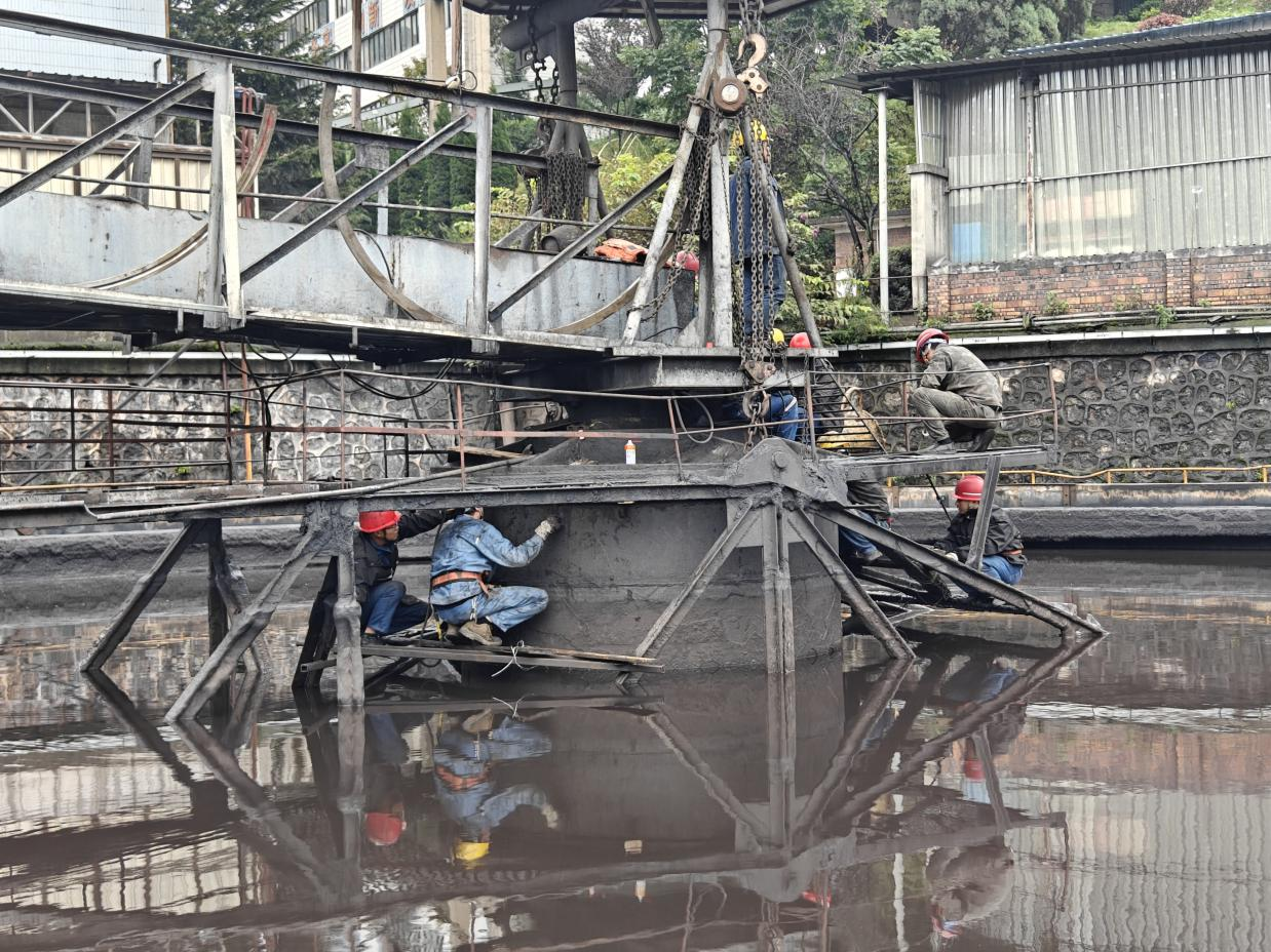 502耙式浓缩机是选煤厂煤泥水处理环节的关键设备,主要用于煤泥水的沉淀浓缩。该设备使用年限超过20年,存在设备老化性能下降、结构锈蚀严重、故障率高等问题。同时,随着井下煤质变化,原煤泥化严重和末煤量增加,煤泥水处理量大、设备运行负荷增大,给浓缩机的平稳、安全运行带来影响。