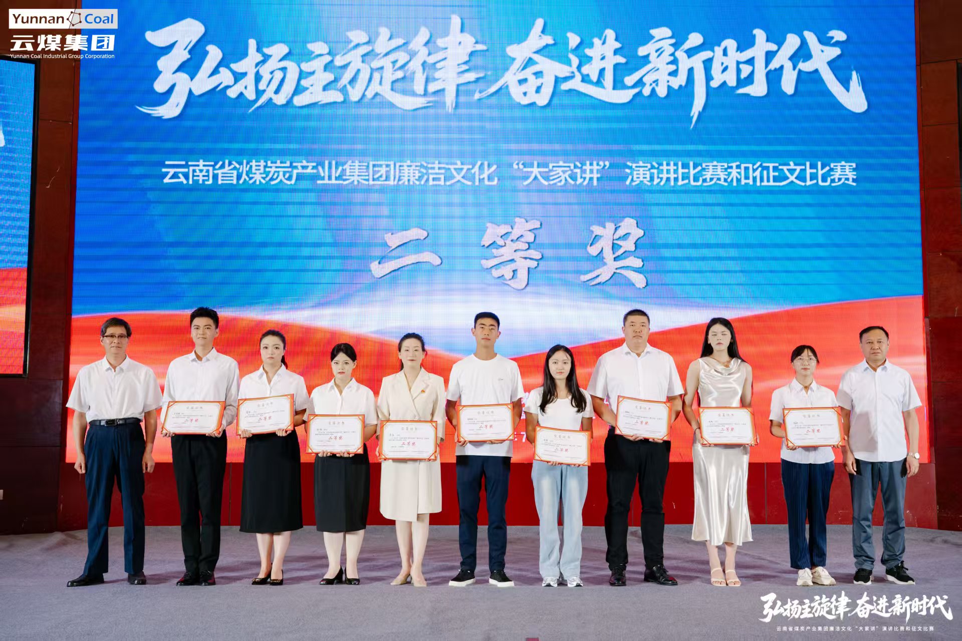 在“弘扬主旋律 奋进新时代”廉洁文化“大家讲”演讲比赛中,廖敏以《不得》为题,凭借极具深度的演讲内容与富有感染力的表达技巧,赢得了评委的高度认可和现场观众的热烈掌声,最终荣膺三等奖。在赢得荣誉的同时,也展示了公司干部职工昂扬向上的精神风貌与时代风采。