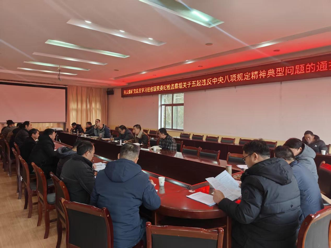 兴云煤矿党总支组织矿领导班子、所属党支部书记以及部分科室、连队管理人员集中学习驻省国资委纪检监察组《关于五起违反中央八项规定精神典型问题的通报》。要求各党支部、连队负责同志切实履行好党风廉政建设第一责任人职责,以身作则、率先垂范,带头遵守廉洁自律各项规定,抓好班子、带好队伍。要紧盯关键节点,系牢拒腐防变的“紧箍咒”,绷紧纪律高压“弦”,做到自警自省,恪守廉洁从业底线,严守纪律红线。