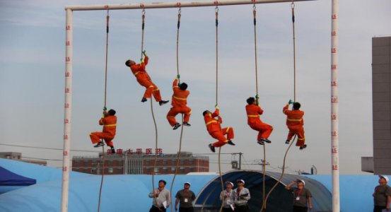 (全国第十一届矿山救援竞赛图---高空绳索救援)