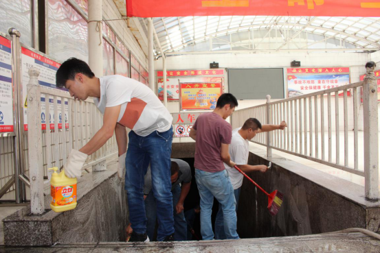 为营造整洁、和谐、文明的工作环境,9月4日下午,兴云矿井团总支部组织13名青年团员对群监站接待大厅及候车井乘车硐室开展了一次义务清扫活动,简单的分工后,大家迅速投入到活动中,主要对群监站大厅顶、墙壁、地板、设施以及候车井乘车硐室墙壁、台阶、地板进行冲洗和清理,在整个劳动过程中大家热情高涨、干净十足,经过两个半小时的辛勤劳动,使整个环境焕然一新。给全体干部职工留下了美好的印象,创造了一个干净、整洁、整齐、敞亮的工作环境,让入井的职工带着好心情上班,在自己的工作岗位上遵章守纪,按章操作;给下班职工一个舒畅的心情,让他们感受到在良好的工作、生活环境中工作,再苦再累也开心,通过这种方式为企业的安全生产作出青年人应有的贡献。