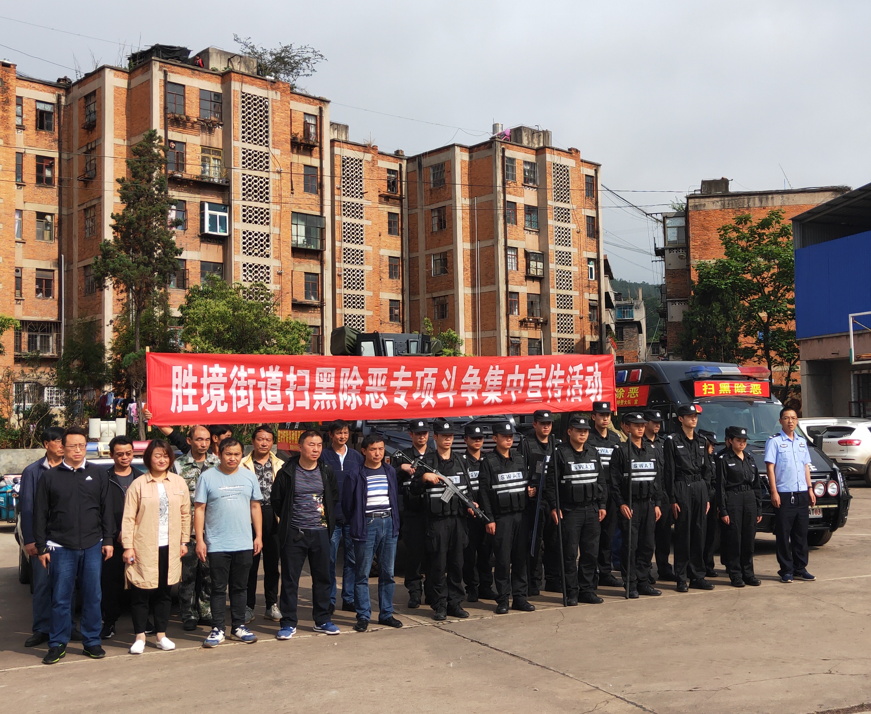 5月30日胜境街道扫黑除恶专项斗争领导小组到矿开展扫黑除恶专项斗争集中宣传活动。工作人员在矿区人员密集场所派发《中华人民共和国反间谍法》、《中华人民共和国国家安全法》、云南省打击和处置非法集资工作领导小组办公室编印的《防范非法集资宣传(下)》、富源县扫黑除恶专项领导小组办公室印制的《扫黑除恶宣传手册》、中共富源县委普法依法治县办和富源县司法局编印的《农村常用法律政策解答》读本、《胜境街道文明乡风宣传手册》等宣传册子及读本200余份,张贴《最高人民法院 最高人民检察院 公安部 司法部 关于依法严厉打击黑恶势力违法犯罪的通告》、《富源县公安局重点打击十二类“黑恶”势力》、《富源县公安局群众举报黑恶势力犯罪奖励办法》宣传海报20余份。通过开展法律宣传活动,不断提高职工群众对扫黑除恶专项斗争的思想认识,努力营造全民参与扫黑除恶的浓厚氛围。(张志明)