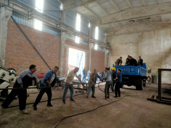 早上8:30分,在现场负责人讲解了施工安全注意事项后,随着一声令下,32名党员立即投入紧张有序的劳动中,拖电缆、盘电缆、吊电缆上车......整个劳动场面热火朝天,在劳动现场,由于电缆长度较长且重又是杂乱盘在一起,需要从地面将电缆一根一根通过人力拖出理顺。汗水滴答从脸上滑落湿透了衣服,身上沾满灰尘,但没有一个人退缩,大家齐心协力,喊着口号“一、二、三”一点一点移动电缆,在劳动中,大家激情高昂,发扬不怕脏、不怕苦、不怕累的精神,中午在工作现场吃完简单盒饭后没有休息,连续干活到下午18时,经过近10个小时的努力,将电缆全部拖移装车运走到位,腾出维修场地。劳动结束后,所有人汗流浃背,却没有一个人喊累。